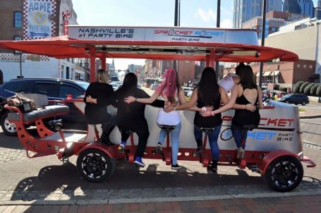 The highlight of our Saturday apart from hanging out at the Honky Tonk Central all afternoon and talking to strangers (everyone is so friendly in Nashville!), was going on the Sprocket Rocket party bike tour. Nothing is quite as fun as drinking beer on a bike, loudly singing, going at a speed of five miles per hour (pissing off every driver in the process) and posing for the paparazzi a.k.a. tourists taking pictures of us. The tour lasted about an hour and a half, with a short break in between and yes, your legs will feel the burn.